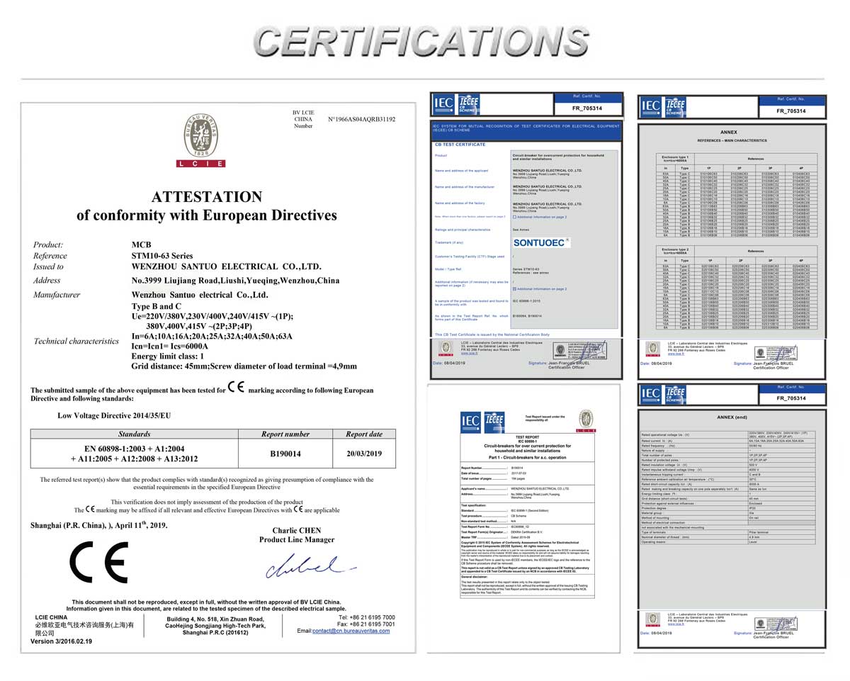 Soontuoec waa mid ka mid ah alaab-qeybiyeyaasha Shiinaha / Soo-saareyaasha ku takhasusay soosaarka aaladaha kala duwan ee korantada ee Stm10-63 Waxay ku habboon tahay in nidaamka awoodda 50 ama 60 soo noqnoqod, UE 400V iyo hoosta, UI iyo hoosta.Wax-hoosaadka heerarka IEC60898.1 iyo GB10963