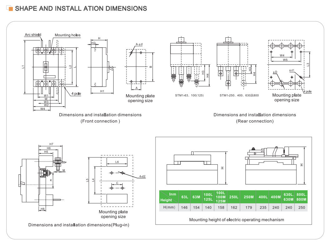 | Qaabka | STM1-125 | STM1-250 | STM1-400 | STM1-630 | STM1-800 | STM1-1250 | |||||||||||||